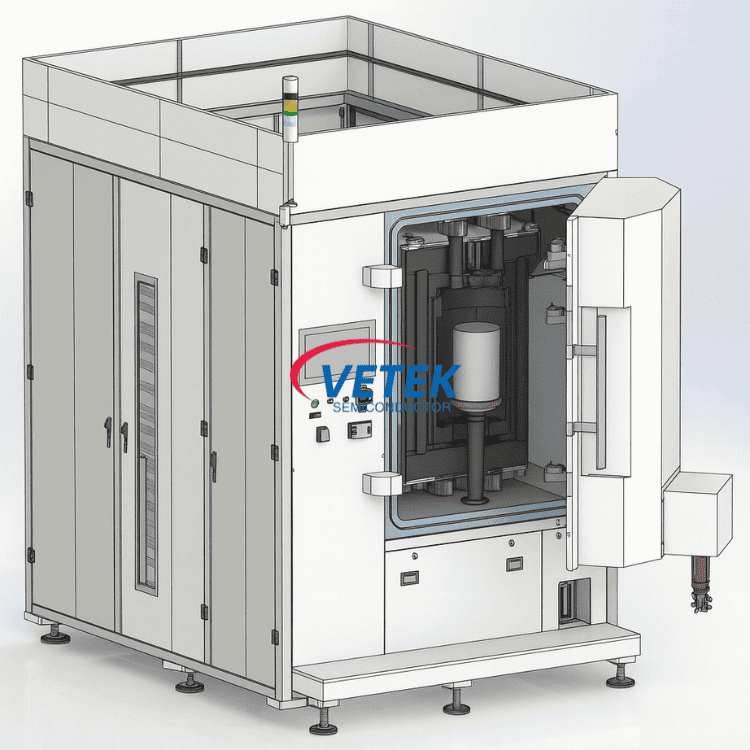 Silicio karbido kristalų auginimas yra pagrindinis didelio našumo puslaidininkinių prietaisų gamybos procesas. Kristalų auginimo įrangos stabilumas, tikslumas ir suderinamumas tiesiogiai lemia silicio karbido luitų kokybę ir išeigą. Remdamasi fizinio garų transportavimo (PVT) technologijos savybėmis, Veteksemi sukūrė atsparumo šildymo krosnį, skirtą silicio karbido kristalų auginimui, leidžiančią stabiliai augti 6 colių, 8 colių ir 12 colių silicio karbido kristalus, visiškai suderinamus su laidžiomis, pusiau izoliacinėmis ir N tipo medžiagų sistemomis. Tiksliai valdydamas temperatūrą, slėgį ir galią, jis veiksmingai sumažina kristalų defektus, tokius kaip EPD (Etch Pit Density) ir BPD (bazinės plokštumos dislokacija), kartu pasižymi mažu energijos suvartojimu ir kompaktišku dizainu, atitinkančiu aukštus pramoninės didelio masto gamybos standartus.